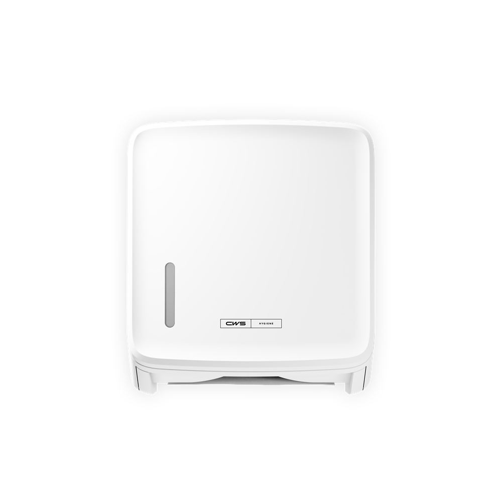 CWS Faltpapierspender PureLine Paper mit weißem Frontpanel und Druckknopf