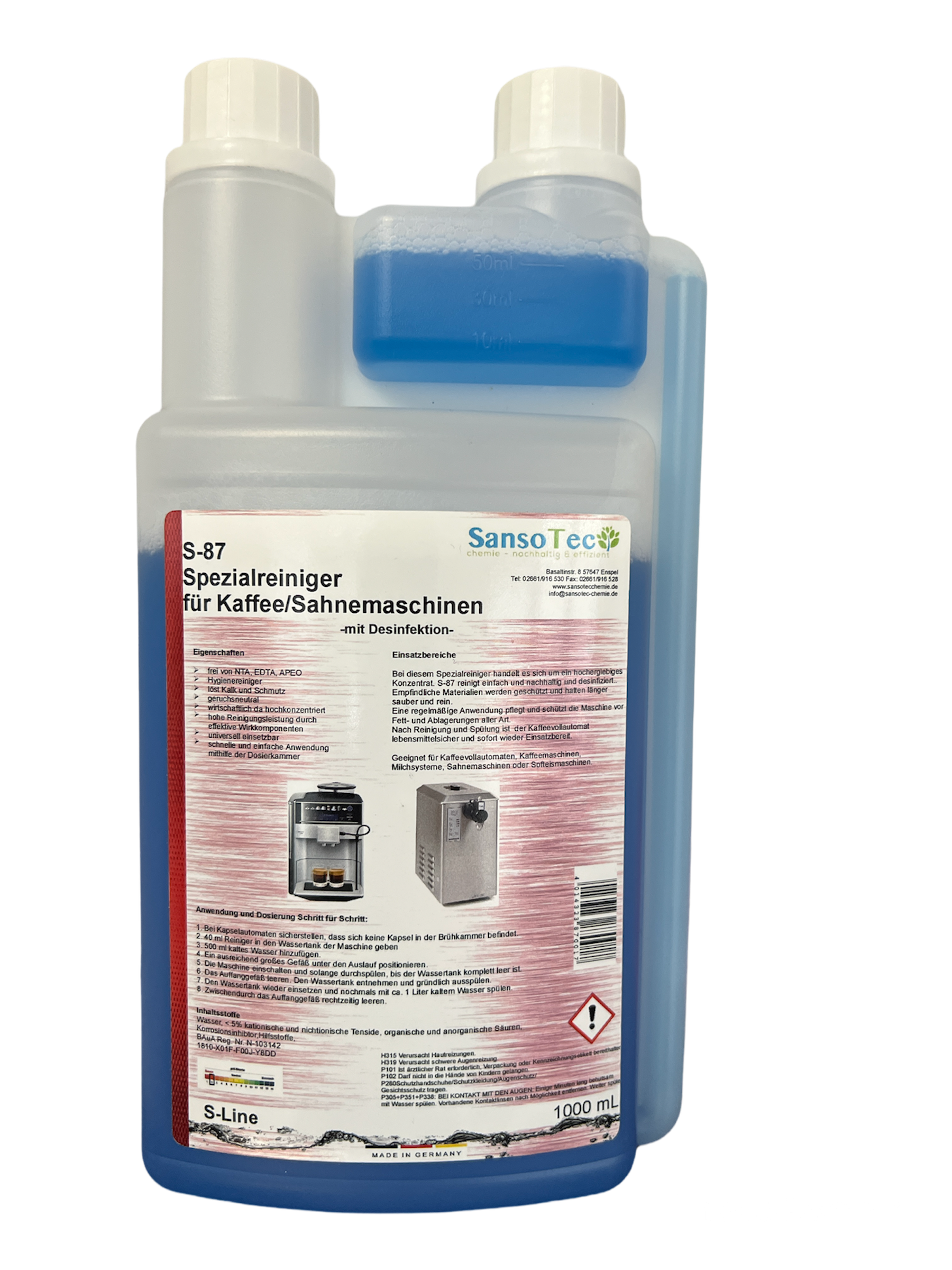 Flüssiger Reiniger für Kaffeemschinen, Sahnemaschinen und Milchaufschäumer