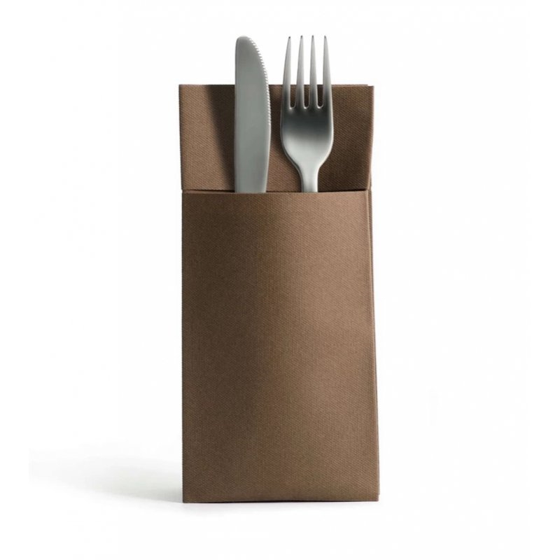 Bestecktasche – Besteckservietten aus Airlaid Hier kaufen Sie die beliebten Bestecktasche zu einem günstigen PreisHochwertig schön sind Besteckservietten aus Airlaid für den gedeckten Tisch. Ob weiß oder farbig ideal für elegante Tischdekoration. Die Kombination aus hochwertigen Materialien, sowie Funktionalität ergeben eine Symbiose, die seinesgleichen sucht. Die vielen schönen Farbtöne sind ein Garant für stillvolles Tischambiente. Das Besteck wird hygienisch aufbewahrt und bietet zugleich eine Serviette in Einem. Airlaid oder auch genannt Vlies ist ein nahezu stoffähnliches Produkt. Schnelles Eindecken von Tischen, speziell für die Gastronomie, Hotel, Brauhaus oder Imbiss, garantiert effizientes Arbeiten! Produktdetails der Bestecktasche1000 stk. pro Karton Airlaid 55g / braun39x40 cm